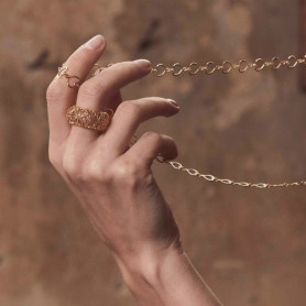 Anello realizzato in argento 925 con galvanica oro rosa ad alto spessore e resistenza con cuori Maman et Sophie intrecciati.