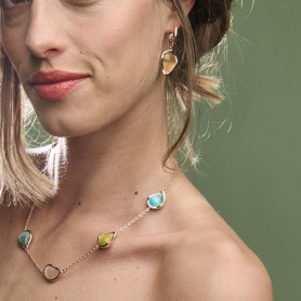 Girocollo in Argento 925, placcato in Oro con quarzi idrotermali sintetici pistacchio, avorio, verde e melograno.