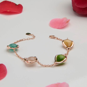 Bracciale in Argento 925, placcato in Oro con 4 quarzi idrotermali sintetici ghiaccio e verde e rosa.